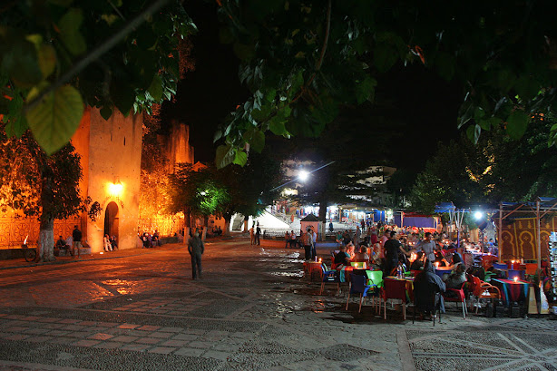 En la plaza de Chaouen, "el General y su compañía" hacen que se desaloje de la mesa a una parejita (lo siento, chicos). Hay cerveza, nos dice el camarero repitiendo "Hola, hola caracola" y toda una sarta de sinsentidos, pero es cara, añade. El trámite para comprarla se parece asombrosamente al de adquirir hachís.